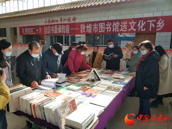 中國(guó)甘肅網(wǎng)11月15日訊 (本網(wǎng)記者 張?zhí)m琴)為了深入學(xué)習(xí)宣傳貫徹黨的二十大精神,近日敦煌市圖書館組織開展“禮贊黨的二十大,自信書香滿敦煌”送文化下鄉(xiāng)活動(dòng)受到當(dāng)?shù)厝罕姎g迎。據(jù)了解,活動(dòng)將在敦煌市各鄉(xiāng)鎮(zhèn)持續(xù)進(jìn)行,通過黨的二十大主題圖片展和敦煌精品圖書展相結(jié)合,利用文化惠民下基層的方式,向基層群眾宣傳黨的二十大精神,豐富人們的精神文化生活。