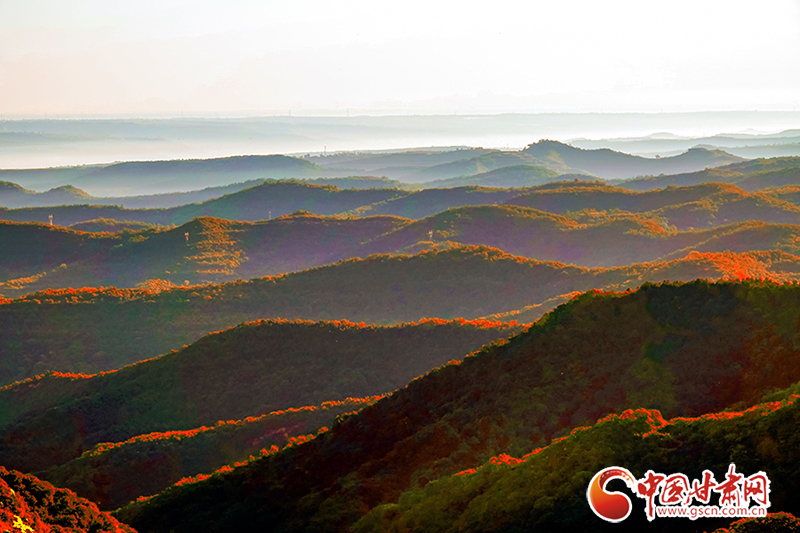 初冬時(shí)節(jié),在夕陽(yáng)的映照下,平?jīng)鍪刑泼鄙绞〖?jí)森林公園云霧繚繞,山巒在云霧中若隱若現(xiàn)、如夢(mèng)如幻,呈現(xiàn)出仙境般美景。