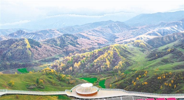 今年以來,臨夏縣圍繞旅游大通道項目,在景區(qū)建設(shè)完善步道、觀景臺等基礎(chǔ)設(shè)施,帶動旅游產(chǎn)業(yè)發(fā)展。圖為景色如畫的耳子屲梁。 記者 史有東 攝