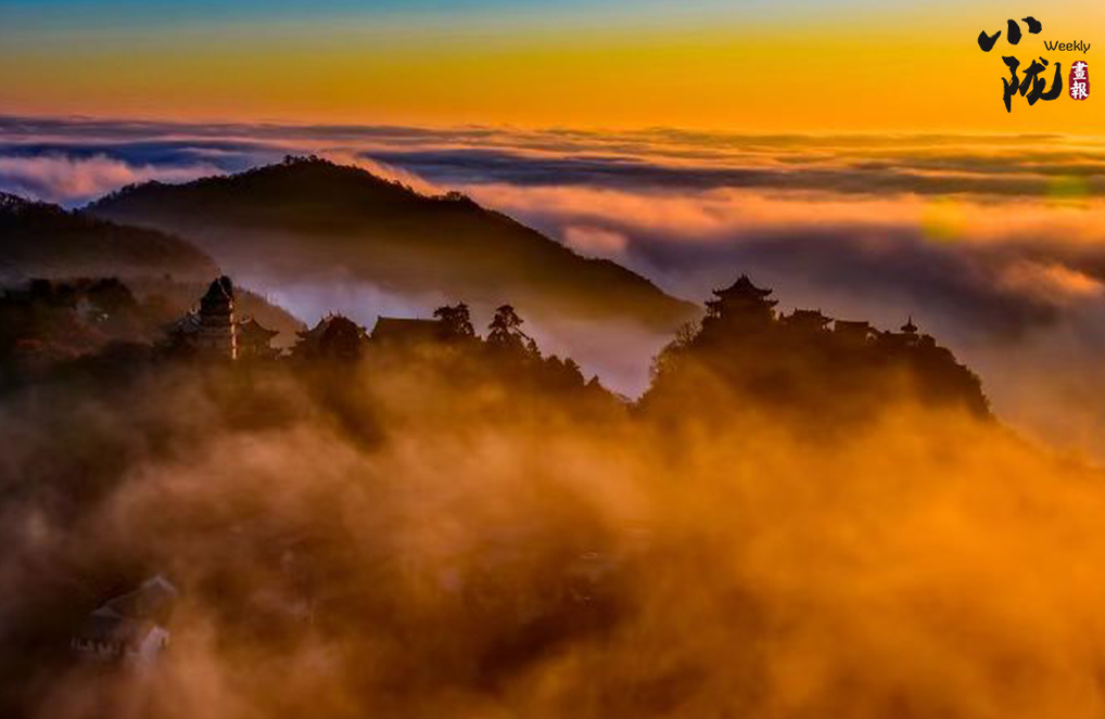 雪霽,登臨崆峒,望旭日東升,彩霞映紅山間,云霧隨風(fēng)翻滾,像云彩縹緲,纏繞在山腰之間,彌漫開來,又如一條仙女的白絲帶……絢麗而有詩意。