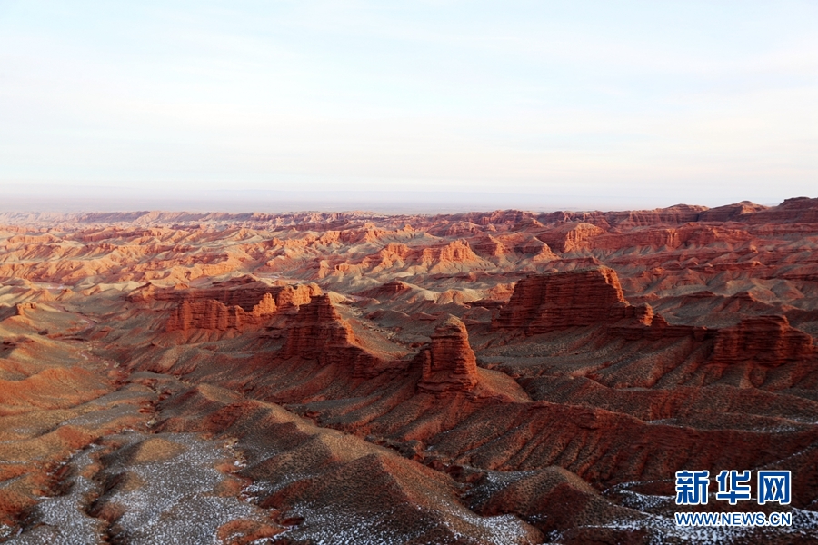 1月1日清晨,甘肅張掖平山湖大峽谷景區(qū)雪后初霽、群峰聳立,在新年朝陽的照耀下更顯雄渾壯觀。新華網發(fā)(成林 攝)