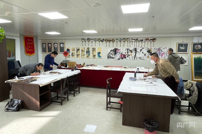 市民在美術(shù)館內(nèi)進(jìn)行書畫創(chuàng)作(央廣網(wǎng)發(fā) 慶陽市委宣傳部 供圖)
