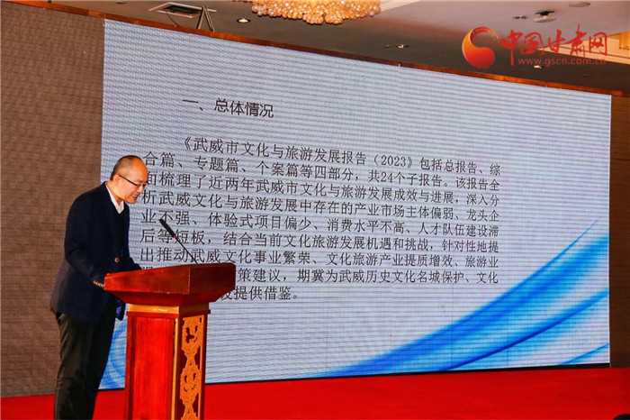 中國甘肅網(wǎng)1月8日訊(本網(wǎng)記者 張慧雅 何星丑 趙志富)1月8日,在甘肅系列藍皮書發(fā)布現(xiàn)場,由甘肅省社會科學院與武威市涼州文化研究院合作編寫了《武威市文化與旅游發(fā)展報告(2023)》同期發(fā)布。藍皮書建言,武威市要深入挖掘涼州文化內(nèi)涵,提煉其精神標識和文化精髓,促進涼州文化創(chuàng)造性轉(zhuǎn)化、創(chuàng)新性發(fā)展,從而促進武威文化旅游產(chǎn)業(yè)高質(zhì)量發(fā)展。