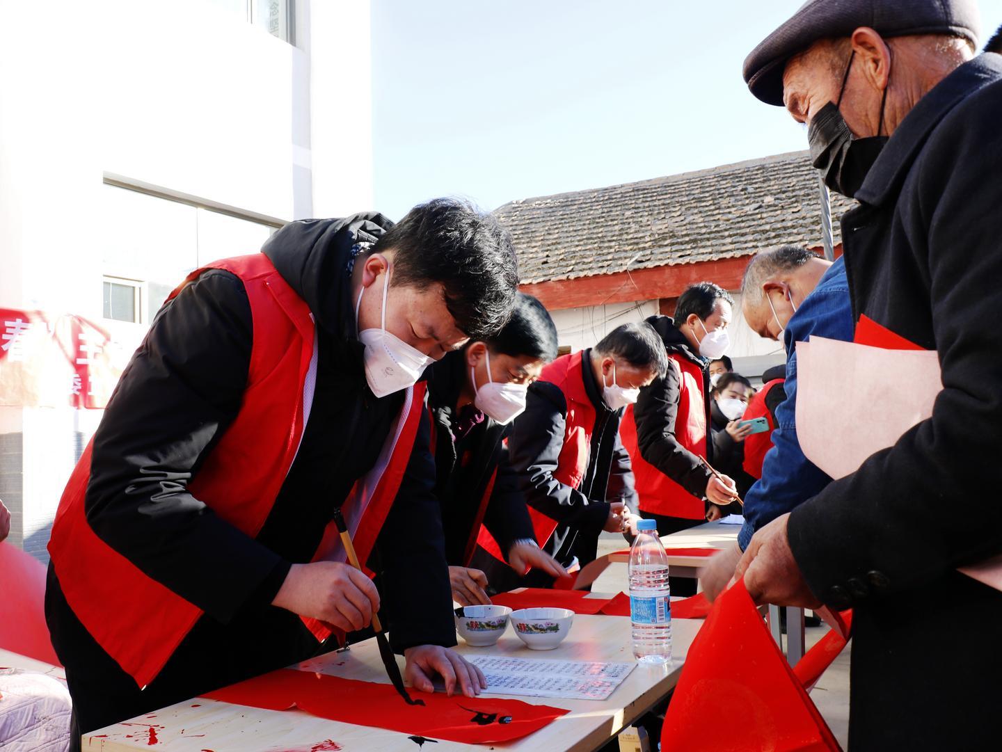 活動(dòng)現(xiàn)場(chǎng),來(lái)自涼州區(qū)書(shū)法家協(xié)會(huì)、涼州區(qū)書(shū)畫(huà)院的文化志愿者們揮毫潑墨,筆尖游走于墨色與紅紙之間,以筆寄意、以字傳情,片刻間,一張張象征平安吉祥的"福"字、一副副謳歌黨的二十大、內(nèi)容文明健康的紅色喜慶春聯(lián),寄托著滿滿的新春祝福撲面而來(lái)?,F(xiàn)場(chǎng)群眾拿到自己心儀的春聯(lián)和"福"字,喜悅之情溢于言表。活動(dòng)中,涼州區(qū)婦女聯(lián)合會(huì)、共青團(tuán)涼州區(qū)委等單位還開(kāi)展了愛(ài)心捐贈(zèng)、公益診療、義務(wù)理發(fā)等志愿服務(wù)活動(dòng),為困難群體送上溫暖和健康。