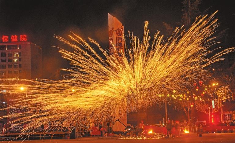 1月24日至26日晚間,河南省洛陽市向陽打鐵花藝術(shù)團(tuán)在天水秦州萬達(dá)廣場1號門表演千年絕技“打鐵花”,為群眾奉獻(xiàn)了一場震撼的視覺盛宴。