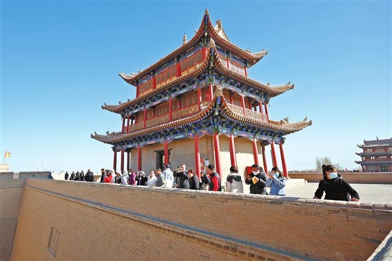 3月4日,游客在嘉峪關(guān)關(guān)城景區(qū)參觀游覽。春暖復(fù)蘇,甘肅省不少古絲綢之路節(jié)點(diǎn)城市喜迎旅游開門紅。在擁有世界文化遺產(chǎn)的甘肅省嘉峪關(guān)市,歷史文化古跡、現(xiàn)代主題樂園、夜市等景點(diǎn),都吸引了不少游客前來游覽體驗(yàn)。今年以來,當(dāng)?shù)赝瞥鑫穆孟M(fèi)券、景點(diǎn)優(yōu)惠套票、獎補(bǔ)扶持政策等一系列措施,提振文旅消費(fèi)市場信心,助推絲路文旅產(chǎn)業(yè)強(qiáng)勁復(fù)蘇。