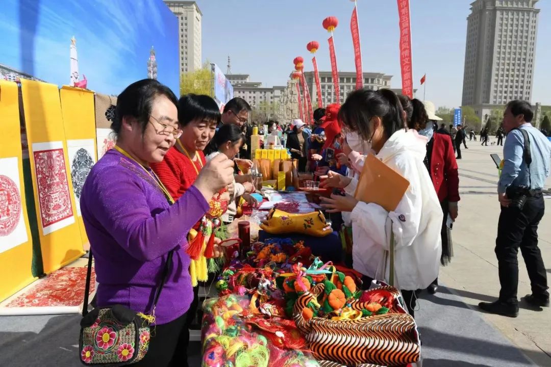 白銀市第五屆黃河風(fēng)情文化旅游節(jié)啟動(dòng)儀式上游客駐足觀賞展覽品。喬麗霞 攝