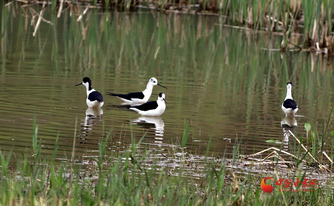 據(jù)了解,這種鳥(niǎo)叫黑翅長(zhǎng)腳鷸,是候鳥(niǎo)的一種,春季于4月初至5月初遷來(lái)中國(guó)北方繁殖地,秋季于9-10月離開(kāi)北方繁殖地往南遷徙。黑翅長(zhǎng)腳鷸是一種涉禽(水鳥(niǎo)中的一類(lèi)),喜歡成群結(jié)隊(duì),淺水而居,以小昆蟲(chóng)、小魚(yú)、蝌蚪等為食。它還是一種惹人喜愛(ài)的水鳥(niǎo),它的嘴細(xì)長(zhǎng)而筆直,體白翅黑,對(duì)比分明,身姿綽約、體態(tài)修長(zhǎng),被譽(yù)為“鳥(niǎo)中模特”或者“長(zhǎng)腿超模”。
