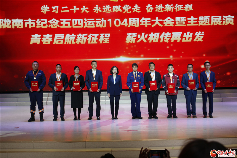 大會表彰了2022年度隴南市五四紅旗團委、五四紅旗團支部,向2022年度隴南市優(yōu)秀共青團員、優(yōu)秀共青團干部頒發(fā)了獎狀,向第11屆“隴南青年五四獎章”獲得者頒發(fā)了獎章。
