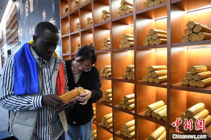 圖為游客在大漢賦館內(nèi)體驗閱讀漢簡(復(fù)制品)?!〈魑牟?nbsp;攝