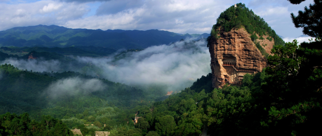 “彩塑點佛窟,丹青繪梵宮”,麥積山石窟位于甘肅省天水市東南約45公里的秦嶺山脈之中。因山形酷似西北地區(qū)農(nóng)家麥垛而得名,后經(jīng)唐、宋、元、明、清各代不斷開鑿擴建,成為中國著名的四大石窟之一。以精美的泥塑著稱于世,被稱為“東方雕塑陳列館”。