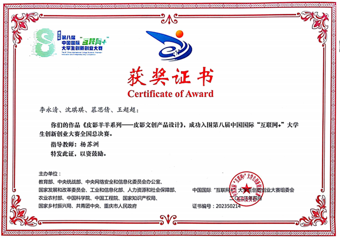 中國甘肅網(wǎng)7月12日訊(西北角·中國甘肅網(wǎng)記者 余守萱 通訊員 郭海霞)近日,從中國國際“互聯(lián)網(wǎng)+”大學生創(chuàng)新創(chuàng)業(yè)大賽組委會傳出喜訊,由環(huán)縣第二中學楊蘇洲老師指導,學生李永清、沈琪琪、慕思倩、王超超四人共同創(chuàng)作完成的作品《皮影羊羊系列——皮影文創(chuàng)產(chǎn)品設計》,成功入圍第八屆中國國際“互聯(lián)網(wǎng)+”大學生創(chuàng)新創(chuàng)業(yè)大賽全國總決賽。
