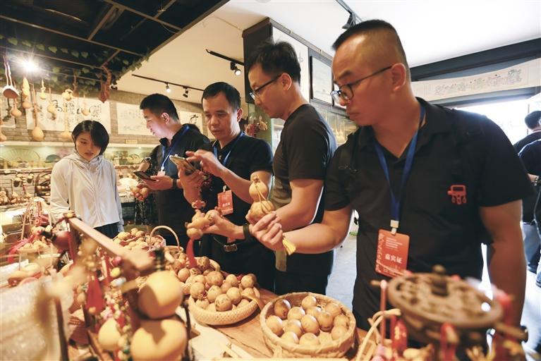 參會(huì)嘉賓觀看刻葫蘆工藝品 張建平 攝