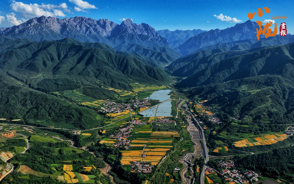 百里平川襯托著綿延群山,一邊是麥?zhǔn)蝻h香的一個(gè)個(gè)綠色盆地,一邊是披蒼著翠的太子山脈。