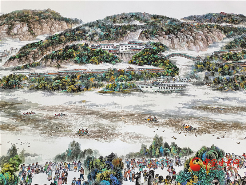 李建春說,畫面上共有500多個個性鮮明的人物,蘭州是多民族兄弟姐妹共同的家園,黃河是母親河,從這個角度,他描繪了黃河兒女的形象,大家生活在蘭州,也熱愛著蘭州。