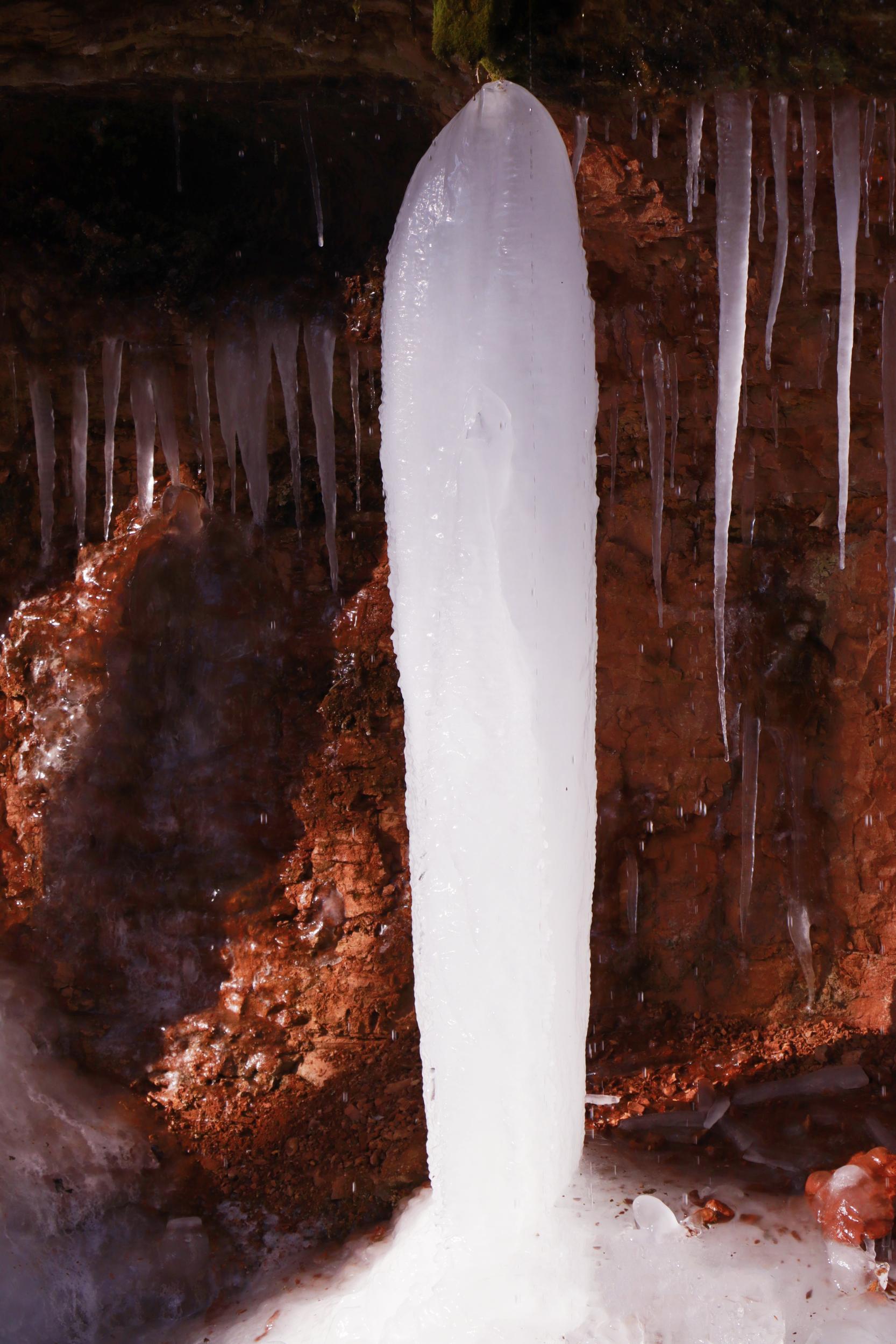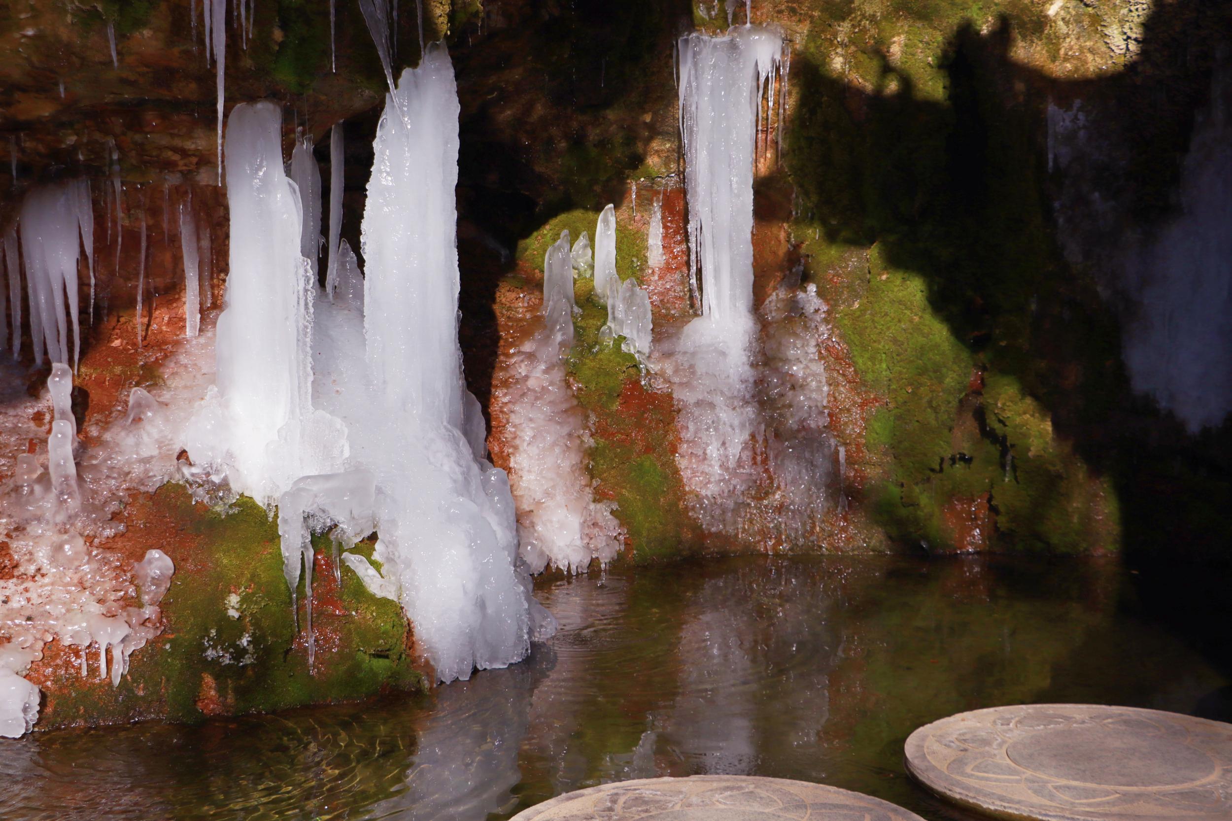 連日來,崇信縣持續(xù)降溫,AAAA級旅游景區(qū)龍泉寺泉水凝結(jié)成奇特秀麗的冰掛、冰柱、冰花美景,懸掛于山間,如萬把銀色寶劍垂吊,展現(xiàn)著冰肌雪骨的風(fēng)姿,似盞盞熒光閃爍,在陽光的照耀下熠熠生輝、耀眼奪目,引來不少游客拍照觀賞。(崇信縣融媒體中心記者:孫淑霞 張百耀)