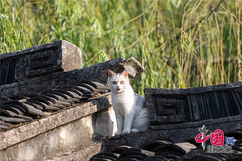 在毛孩子眼里,這就是包容一切活動的「游樂場」,片片青瓦上留下梅花印。或許你也該往古鎮(zhèn)的屋頂上瞧,檐角翹伸、清風古韻,讓人心曠神迷?;蛲侵回堃粯优噬细咛帲拼翱茨撬菢?,那木門青瓦,就是江南水鄉(xiāng)的具象。
