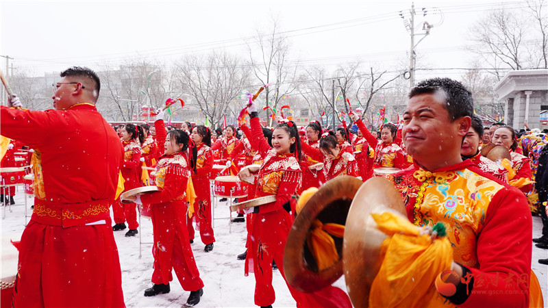 演員們身著喜慶艷麗服裝,頭戴五彩頭飾,手舞彩扇,腰系彩帶,精神抖擻,敲鑼打鼓,盡情表演,贏得陣陣掌聲,現(xiàn)場(chǎng)觀眾紛紛拿手機(jī)、相機(jī),記錄這一刻的熱鬧與喜慶。