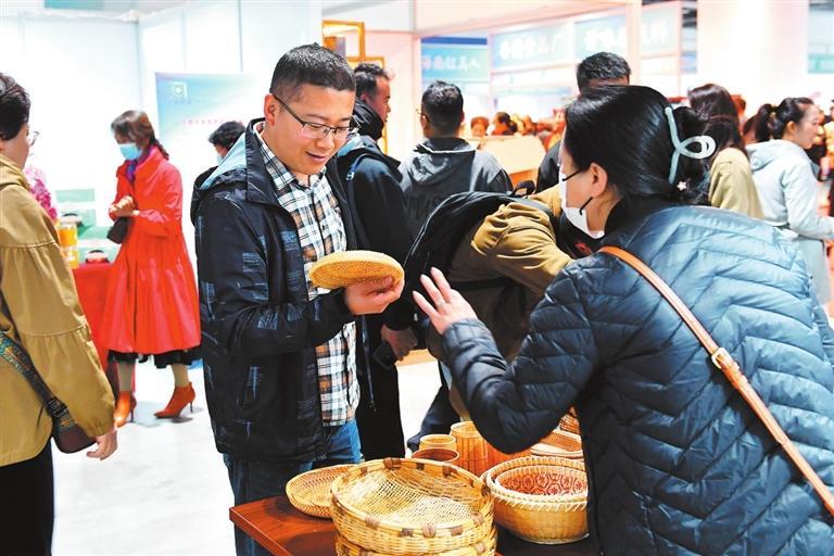 游客在展銷會上選購文創(chuàng)產(chǎn)品。新甘肅·甘肅日報記者 高檣