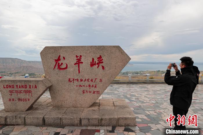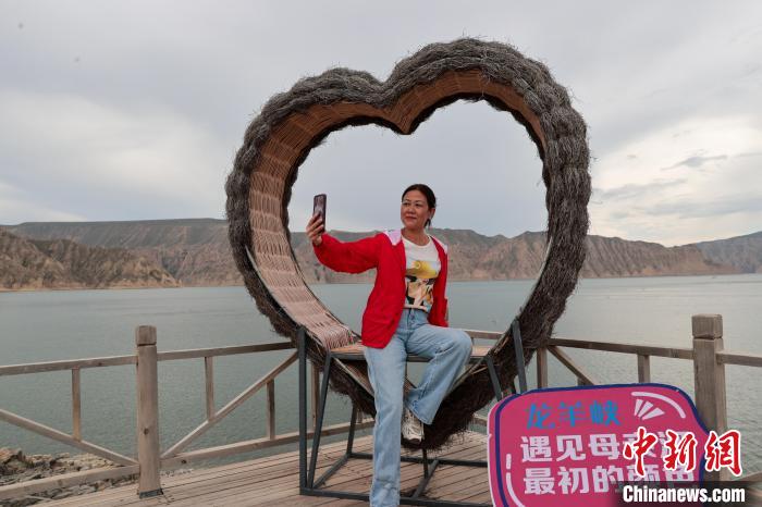 。圖為游客在龍羊峽景區(qū)內(nèi)拍照留念。中新社記者 薛蒂 攝