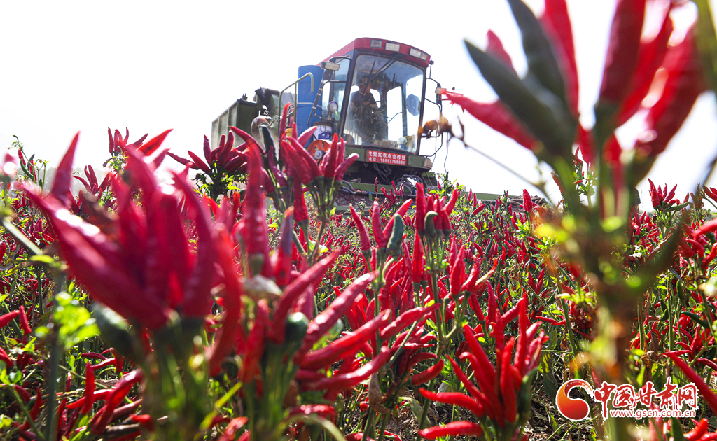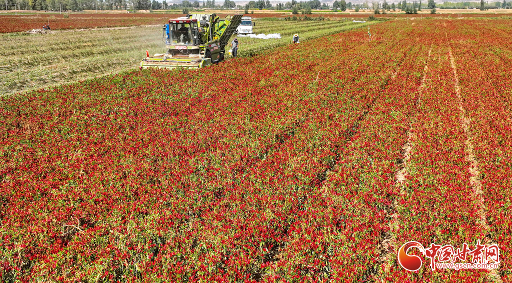 近日,臨澤縣平川鎮(zhèn)種植的3900多畝朝天椒進(jìn)入采收期,朝天椒采收機(jī)馬達(dá)轟鳴,在田地里來回穿梭,快速采收。種植農(nóng)戶們把采收的朝天椒運往晾曬場,經(jīng)過分揀、晾曬、包裝后發(fā)往山東、河南、安徽、重慶、貴州等地訂單客戶手中。