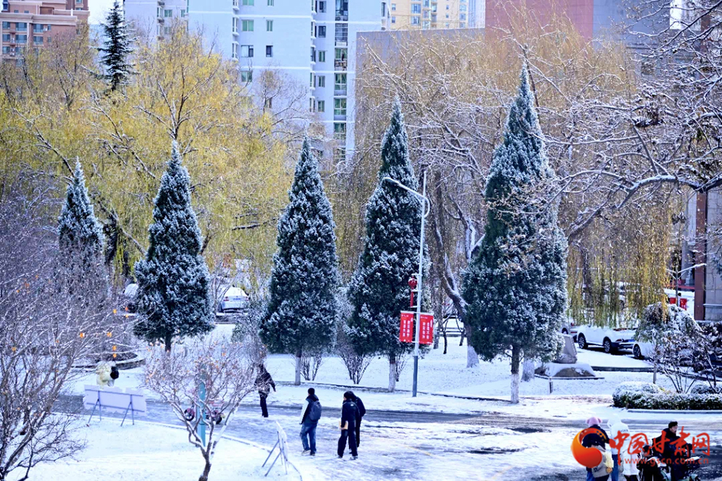 初雪似無數(shù)精靈,校園樹木如瓊枝玉葉,每一片雪花都融在蘭州城市學(xué)院的角落里。