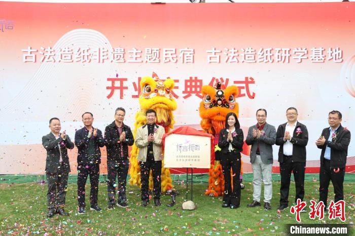 古法造紙研學(xué)基地、古法造紙非遺主題民宿開業(yè)儀式。麥瑞聰 供圖