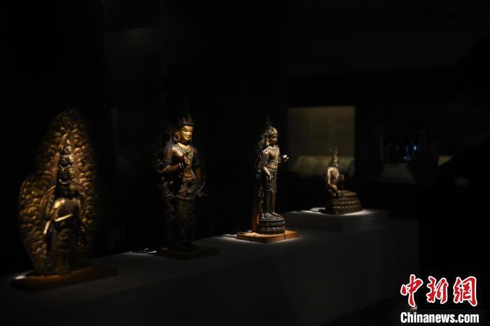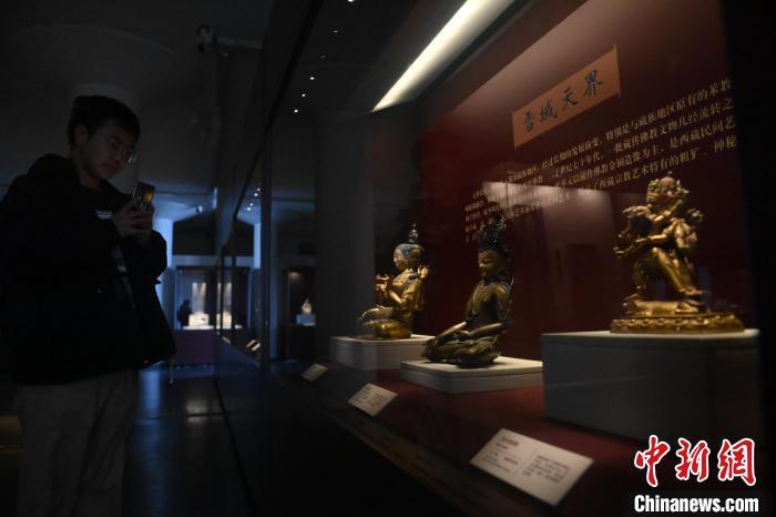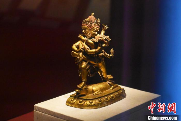 11月28日,甘肅省敦煌市,敦煌研究院敦煌石窟文物保護(hù)研究陳列中心《披沙揀金——敦煌研究院館藏文物擷英展》中的勝樂金剛像。該展由敦煌研究院主辦,2024年下半年煥新布展,展出了不同類型館藏文物,通過這些文物蘊含的豐富歷史信息,展現(xiàn)了敦煌文化的多元與包容,勾勒不同文明偕行共進(jìn)的歷史脈絡(luò)。中新社記者 李亞龍 攝