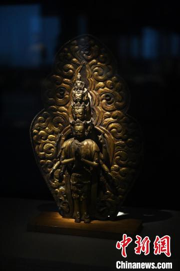 11月28日,甘肅省敦煌市,敦煌研究院敦煌石窟文物保護(hù)研究陳列中心《披沙揀金——敦煌研究院館藏文物擷英展》中的十一面觀音像。該展由敦煌研究院主辦,2024年下半年煥新布展,展出了不同類型館藏文物,通過這些文物蘊含的豐富歷史信息,展現(xiàn)了敦煌文化的多元與包容,勾勒不同文明偕行共進(jìn)的歷史脈絡(luò)。中新社記者 李亞龍 攝