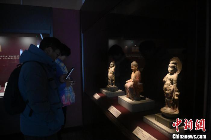 11月28日,甘肅省敦煌市,敦煌研究院敦煌石窟文物保護(hù)研究陳列中心,游人參觀《披沙揀金——敦煌研究院館藏文物擷英展》中的塑像。該展由敦煌研究院主辦,2024年下半年煥新布展,展出了不同類型館藏文物,通過這些文物蘊含的豐富歷史信息,展現(xiàn)了敦煌文化的多元與包容,勾勒不同文明偕行共進(jìn)的歷史脈絡(luò)。中新社記者 李亞龍 攝