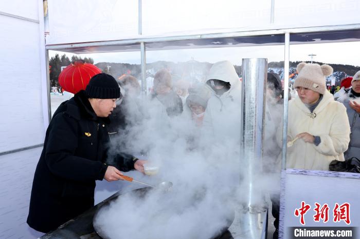 除了豐富的冰雪游樂項(xiàng)目,北極村七星廣場(chǎng)還設(shè)有非遺民俗文化展區(qū)和東北特色美食區(qū),讓游客們?cè)趨⑴c冰雪活動(dòng)的同時(shí),還能欣賞樺樹皮畫、手工編織等具有地方特色的非物質(zhì)文化作品,品嘗江水燉江魚、鐵鍋燉大鵝等東北特色美食。
