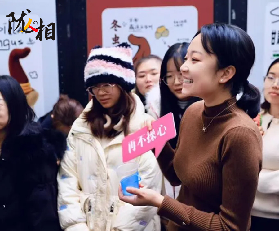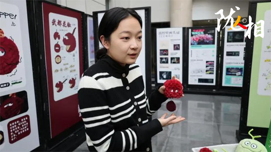 她拿起一只文創(chuàng)玩偶,輕輕拉起玩偶頂部蜷縮的細(xì)柄,這只紫紅色、毛茸茸的花椒玩偶立刻“嗡嗡”震動(dòng)起來(lái)?;ń肺队X(jué)上的麻就這樣傳遞到手上,精妙的構(gòu)思,令大家會(huì)心一笑。
