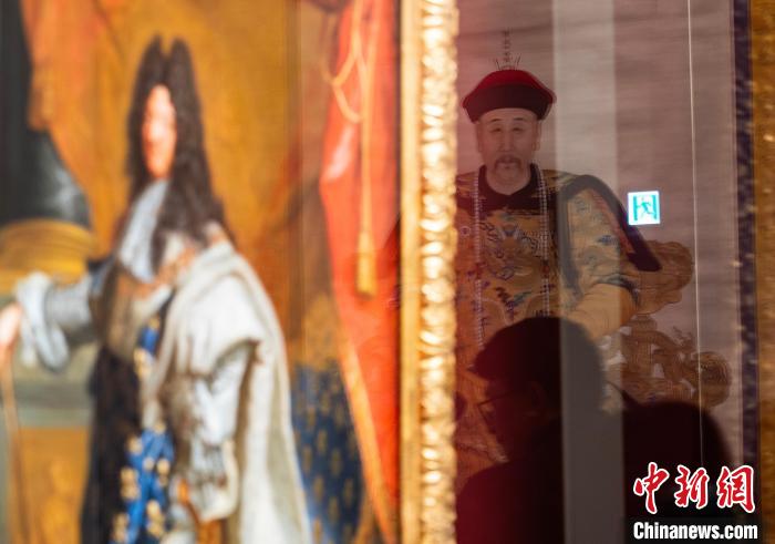2月19日,正在香港故宮文化博物館持續(xù)展出的“當(dāng)紫禁城遇上凡爾賽宮——十七、十八世紀(jì)中法文化交流”展部分珍品煥新亮相,《康熙帝戎裝像》《龐巴杜夫人像》等約20件故宮博物院、法國凡爾賽宮的珍貴展品與公眾見面,繼續(xù)“講述”中法文化之交。圖為展廳玻璃映襯的故宮博物院藏《雍正帝朝服像》(右)和法國《路易十四肖像》。中新網(wǎng)記者 侯宇 攝