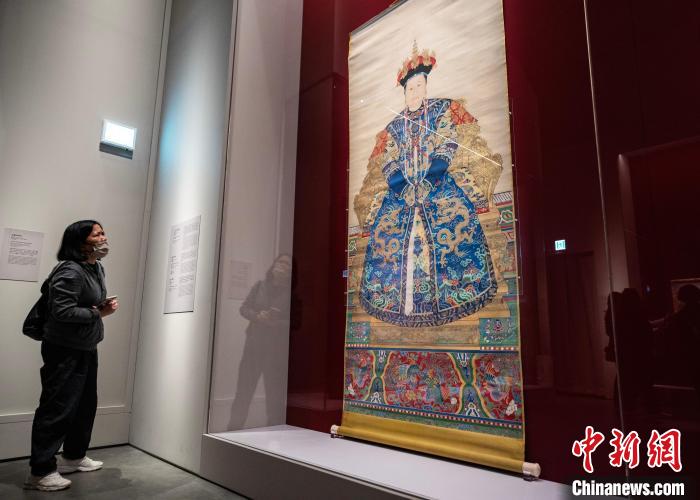 圖為觀眾觀看故宮博物院藏《孝莊文皇后朝服像》展品。中新網(wǎng)記者 侯宇 攝