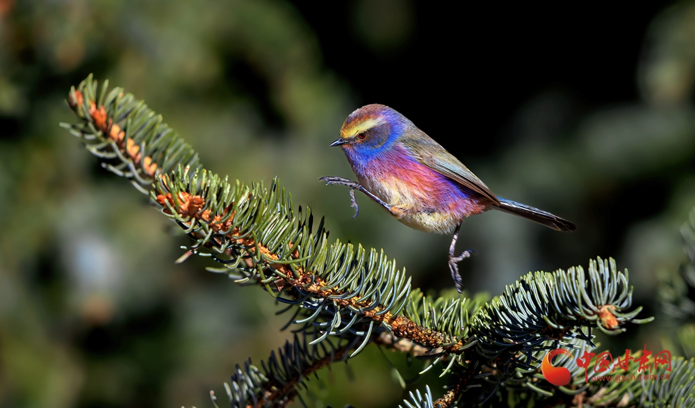 2月25日,初春的甘肅祁連山國(guó)家級(jí)自然保護(hù)區(qū)管護(hù)中心馬蹄自然保護(hù)站林區(qū),幾只花彩雀鶯正在悠閑覓食、鳴唱、飛舞。