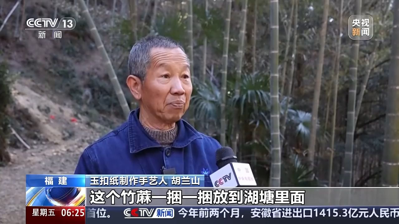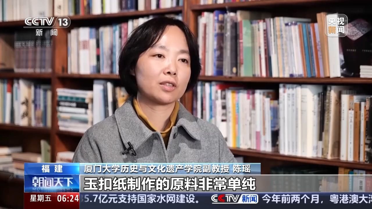 廈門大學歷史與文化遺產(chǎn)學院副教授 陳瑤:玉扣紙制作的原料非常單純。就是三種,一個是竹子嫩竹,第二個是石灰,第三個就是清潔的山泉水?;旧鲜羌兛咳斯磉M行品質(zhì)的管控。