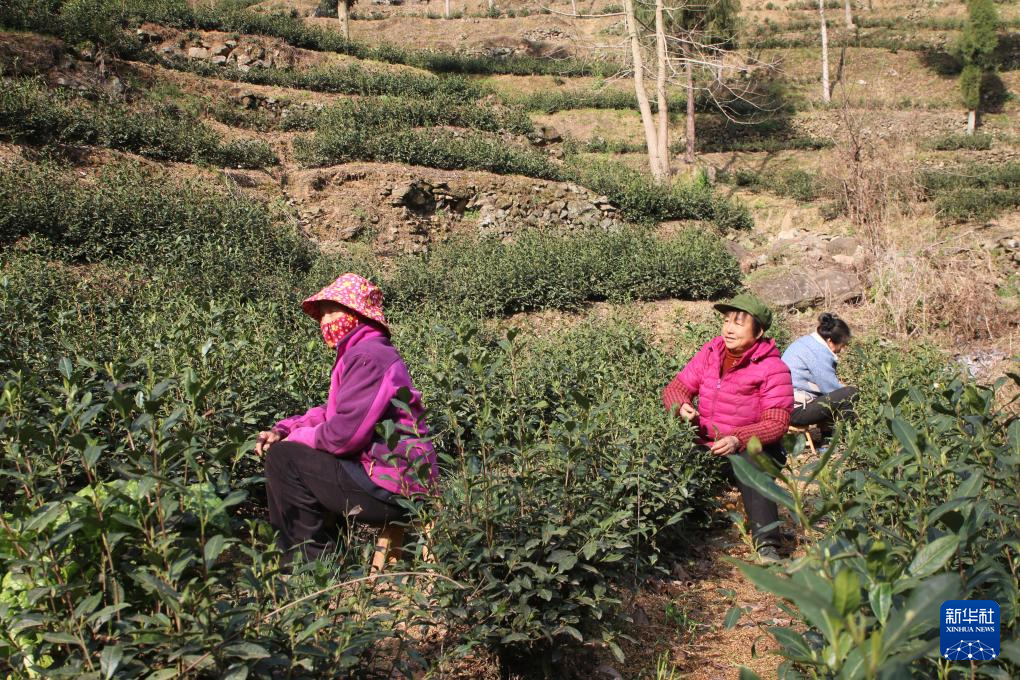 在文縣中廟鎮(zhèn)茶園村,村民正在采摘茶葉。新華社記者李杰 攝