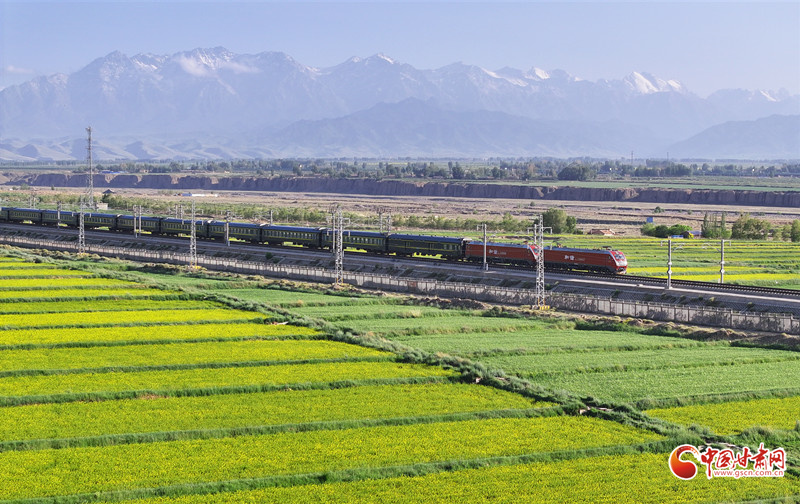 近日,祁連山下的民樂(lè)縣三堡鎮(zhèn)徐寨村的油菜花競(jìng)相綻放,與通村公路、鄉(xiāng)村民居和行駛的火車(chē)交相輝映,構(gòu)成一幅美麗的鄉(xiāng)村田園美景。