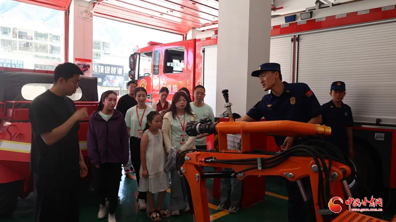 講解結(jié)束后,消防員帶領大家參觀了消防救援車輛、專業(yè)救援設備及消防員日常生活區(qū)域。在裝備展示區(qū),消防員詳細講解了液壓破拆工具、生命探測儀、水域救援裝備等器械在泥石流、火災等不同災害場景中的應用,結(jié)合舟曲地質(zhì)災害特點,生動還原救援場景,讓參觀者深刻體會到消防救援工作的復雜性、專業(yè)性與實用性。