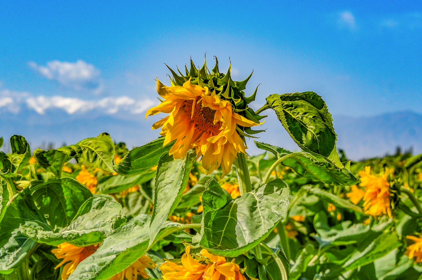 中國甘肅網(wǎng)7月14日訊 據(jù)嘉峪關(guān)日報報道(融媒體中心記者 李巍 攝)近日,嘉峪關(guān)市新城鎮(zhèn)野麻灣村“千畝”制種向日葵迎來盛花期,朵朵花盤匯聚成金色花海,放眼望去,與雪山相融、與藍(lán)天相接,如詩如畫,美不勝收。