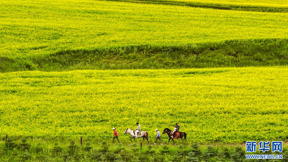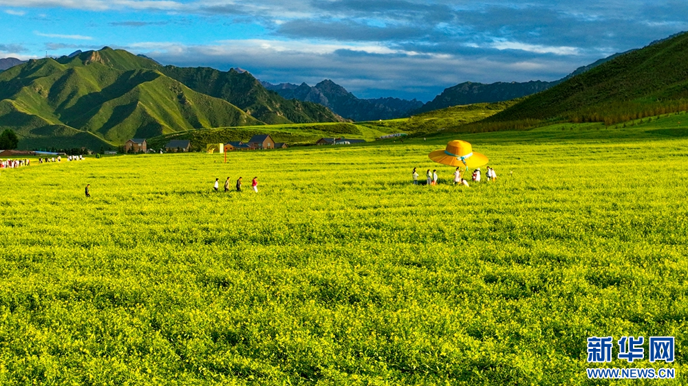 連日來(lái),位于祁連山下的甘肅省張掖市民樂(lè)縣扁都口景區(qū)萬(wàn)畝油菜進(jìn)入盛花期。金黃的油菜花海與草原綠野相連,空氣中彌漫的淡淡花香,醞釀山川,醉了游人。新華網(wǎng)發(fā)(王將 攝)