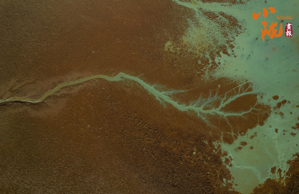 潮水褪去,灘涂勾勒出極似樹根分支的有機形態(tài)——主脈粗壯有力,次脈隨之伸展,末梢則細密如須根,整片灘面仿佛成為一棵倒生巨樹的根系拓印,靜默中透出磅礴的地質美感。